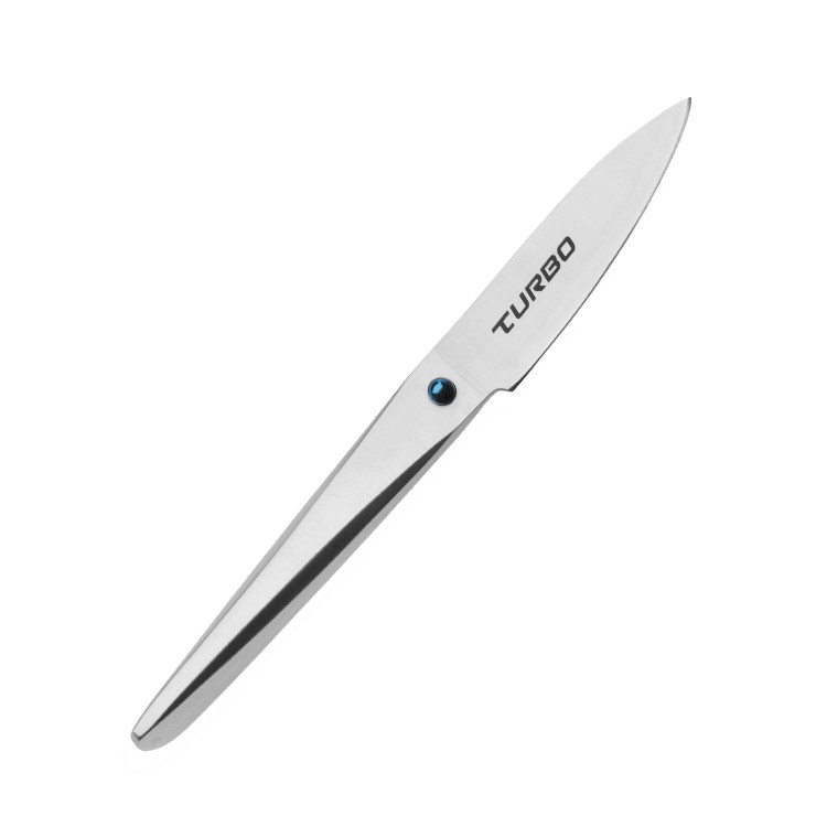 Issue de longues années de recherche, la ligne Turbo voit enfin le jour et représente le meilleur de la coutellerie occidentale et asiatique. Son manche ergonomique en inox retour curve apporte une esthétique hautement fonctionnel tandis que sa lame s'inspire des plus grands couteaux japonais.