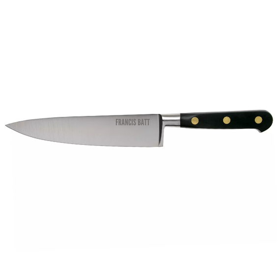 Chez Francis Batt, nous savons que chaque coupe compte. Le Couteau de cuisine du chef Forgé Pro 15 cm avec manche noir et rivets en laiton reflète notre engagement envers la qualité supérieure et l'innovation. Que vous soyez un amateur passionné ou un professionnel expérimenté, ce couteau vous permettra de réaliser des rondelles de légumes dignes d'un maître culinaire.