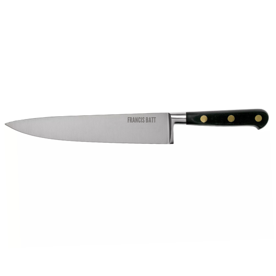 Chez Francis Batt, nous croyons que chaque plat est une œuvre d'art en soi. Le Couteau de cuisine du chef Forgé Pro 20 cm avec manche noir et rivets en laiton témoigne de notre engagement envers la qualité supérieure et l'innovation. Que vous cuisiniez pour impressionner vos convives ou que vous vous lanciez dans une création culinaire personnelle, ce couteau vous accompagnera à chaque étape.