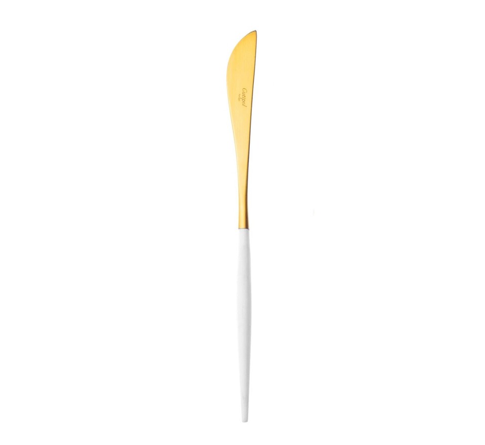 Accueil > Table > Couvert > Couteau de découpe pour viande Goa en acier inoxydable brossé Gold & manche blan
