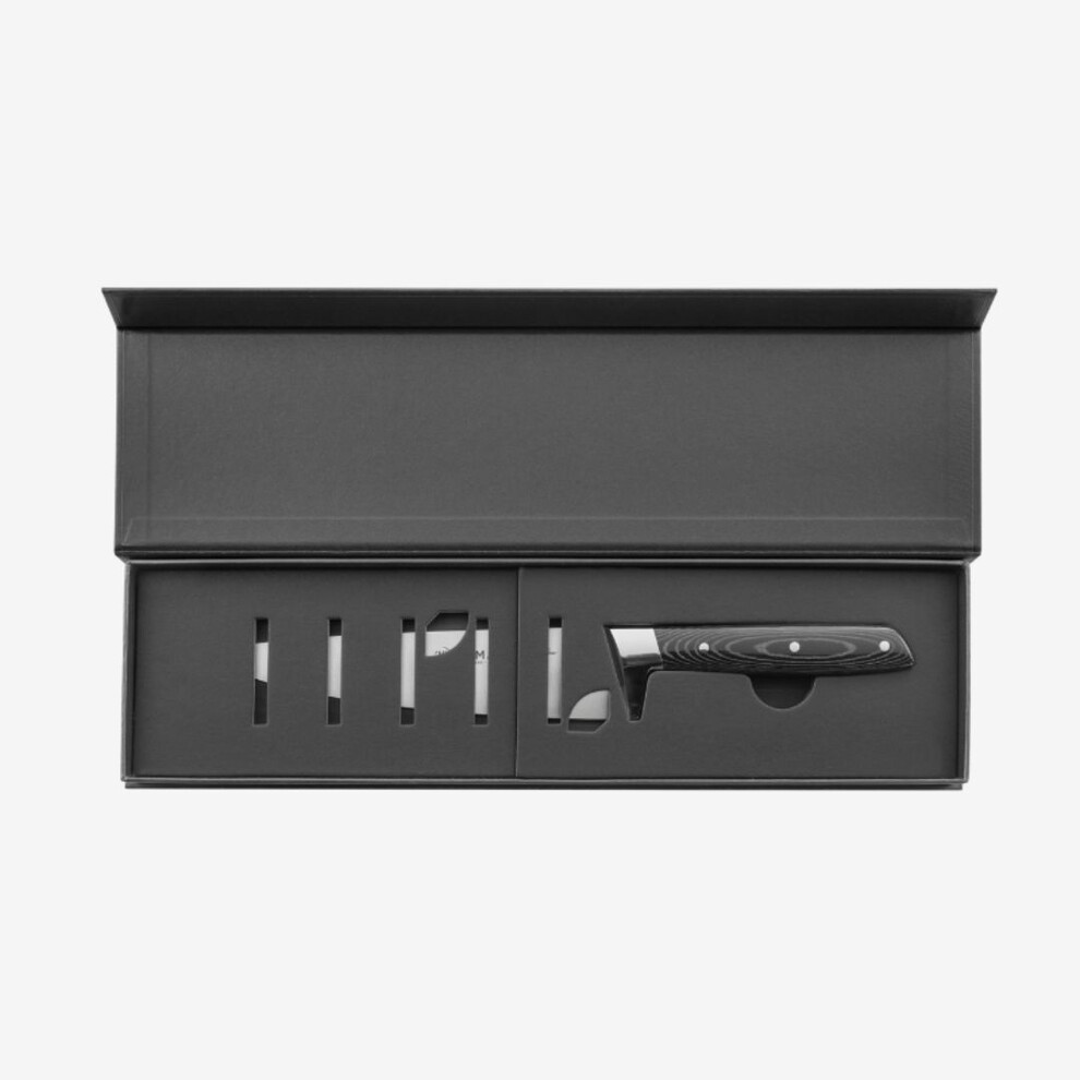 Son manche en micarta assure une prise en main confortable et sécurisée. Résistant et facile à entretenir, le micarta est un matériau innovant, composé de fines couches de lin coloré compressées avec de la résine et doté d’un polissage miroir pour une finition élégante. Parfait pour un usage quotidien, il allie durabilité et esthétique.