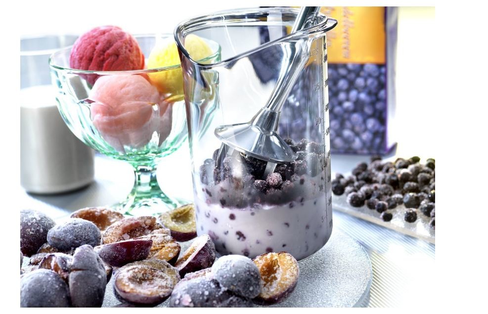 Ce couteau étoile fait également des merveilles pour la préparation des glaces et sorbets. Vous n'avez qu'à placer tous les ingrédients, crème, sucre et fruits, dans le bol gradué et le tour est joué.
