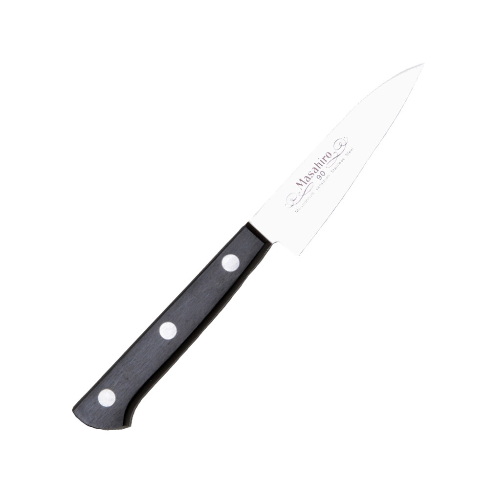 Le couteau d'office 9 cm de Masahiro possède une lame courte et pointue de 9 cm. Extrêmement léger et maniable, il peut être utilisé pour éplucher, peler, nettoyer ou simplement couper précisément les fruits et les légumes. Il est idéal pour toutes les opérations de petite taille effectuées en tenant le fruit ou le légume dans la main.