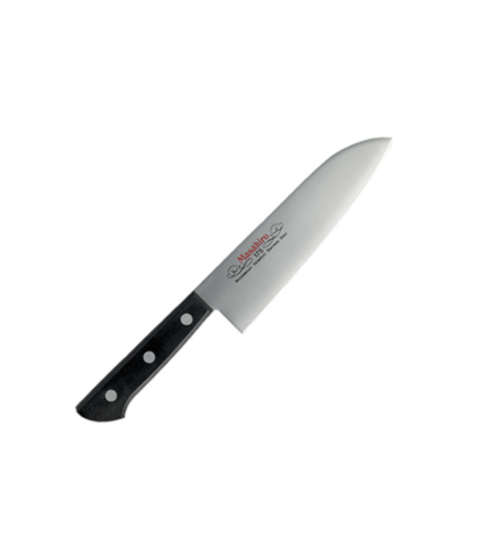 Le Santoku BWH Masahiro est un couteau japonais. Comme les couteaux du chef occidentaux, il est très polyvalent et répond à la plupart des usages courants de votre cuisine. En japonais, Santoku signifie littéralement « 3 avantages » car sa lame peut servir à travailler le poisson, la viande et les légumes, mais aussi car on peut l'utiliser pour découper, émincer et hacher finement.