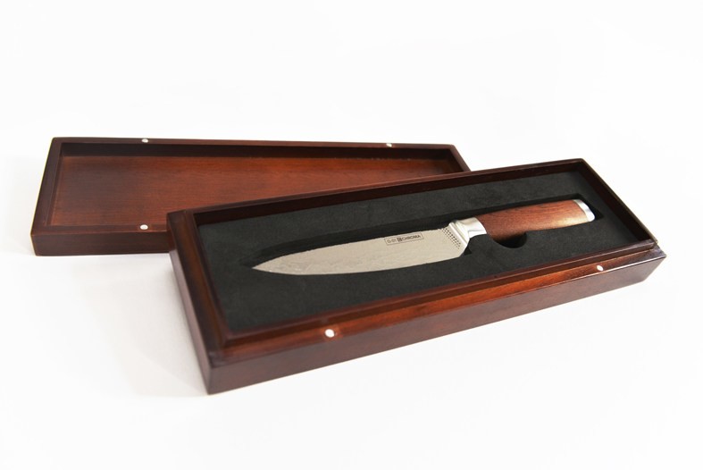 DORIMU Pure Damascus, le damas qui coupe. De nombreux damas sur le marché sont des damas semi-artisanaux de décoration (impairs, avec noyau central) car les vrais damas sont chers. DORIMU de CHROMA déroge à cette règle, c'est un damas 64 couches VG10/VG2 entièrement artisanal, à prix accessible. Il est d'autant plus facile à aiguiser comparé aux aciers noyau et manteau. Livré en boîte cadeau bois laqué.