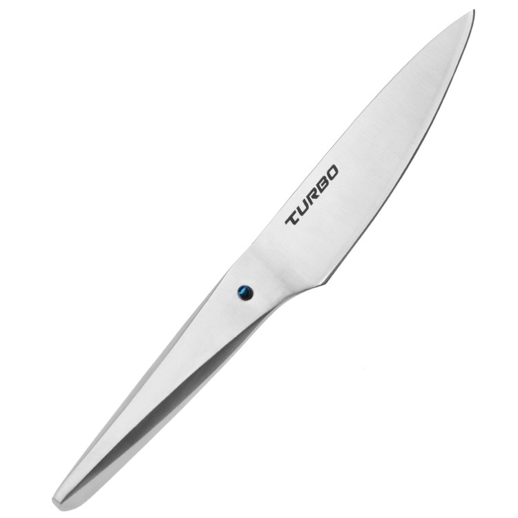 Issue de longues années de recherche, la ligne Turbo voit enfin le jour et représente le meilleur de la coutellerie occidentale et asiatique. Son manche ergonomique en inox retour curve apporte une esthétique hautement fonctionnel tandis que sa lame s'inspire des plus grands couteaux japonais.