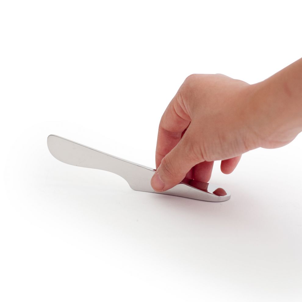 Vous rêvez de ne plus salir votre table de bon matin avec le couteau à beurre ? Le couteau à tartiner « Knife Air » 14 cm en inox poli est votre solution ! Sa poignée innovante permet de poser le couteau à plat sur la table sans qu’il ne la salisse grâce à sa lame surélevée qui ne touche pas la table. Il est idéal pour étaler beurre, pâte à tartiner, confiture, fromage, tapenade … tous ce qui vous fera envie et cela sans la moindre salissure sur votre table. Cette invention révolutionnaire est vraiment pratique à utiliser et vous facilitera la vie. Avec son design élégant et son touché doux, le couteau à tartiner « Knife Air » a remporté le prix « Design Plus ».