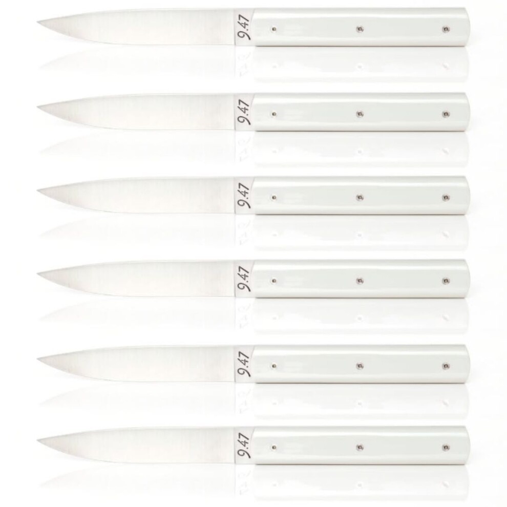 Ce couteau de table atypique a été imaginé par le restaurateur Yves Charles, lors d’un repas avec des amis qui utilisaient des couteaux Le Français, un couteau fermant Inspiré des couteaux du XVIIIe siècle. Le nom 9.47 est lié au vin ayant été bu ce soir là par les convives. Apporté par le producteur auvergnat Stéphane Majeune, du Domaine de Peyra, il titrait à 9.47° d’alcool.