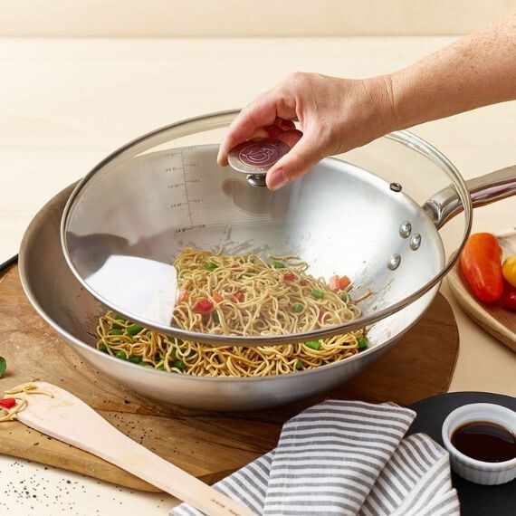 Ce couvercle en verre cerclé inox s'adapte sur les poêles rondes, faitout, sauteuse et casseroles des gammes Milady, Choc Intense et Alchimy.