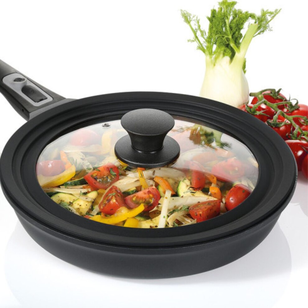 Le couvercle universel en verre Kuchenprofi est robuste et résiste à la chaleur et au four. Parfait pour une cuisson rapide et une bonne conservation de la chaleur.