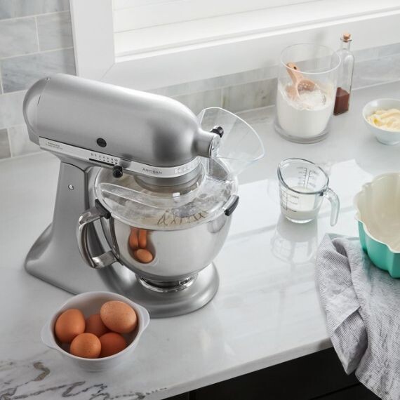 Le couvercle verseur protecteur est un accessoire ajustable et pratique pour votre robot pâtissier multifonction à tête inclinable 4,3 L ou 4,8 L. Il permet d'ajouter les ingrédients pendant la préparation et le mélange, et protège des éclaboussures. La grande glissière inclinée pour les ingrédients vous permet d’ajouter avec précision et facilement des ingrédients en diverses quantités.