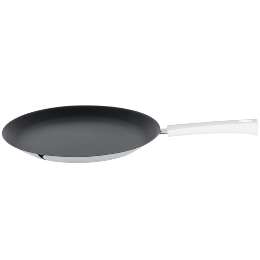 La crêpière ø 30 cm inox revêtue de l’anti-adhérent Exceliss de la collection Mutine à poignée fixe blanche