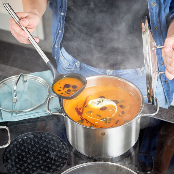 Avec la louche, vous pouvez servir proprement vos soupes ou ragoûts aux herbes.