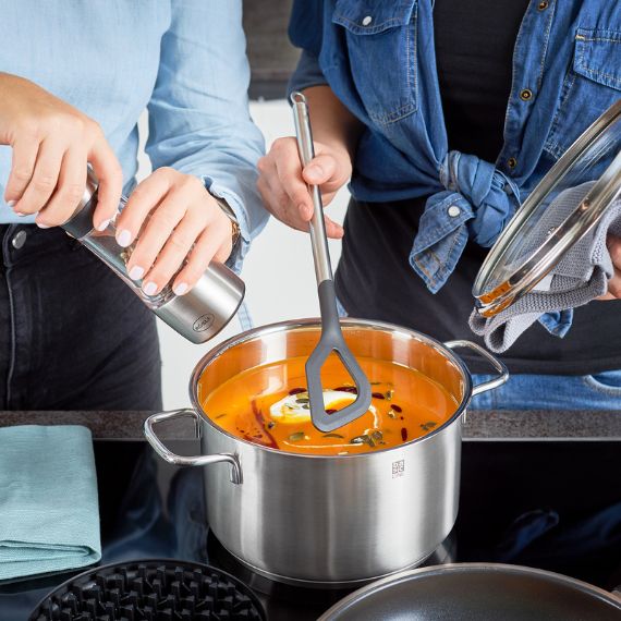 Avec la nouvelle cuillère de cuisson, aucune casserole ne grattera. Avec sa forme si caractéristique, ne ratez aucun recoin de vos plats.