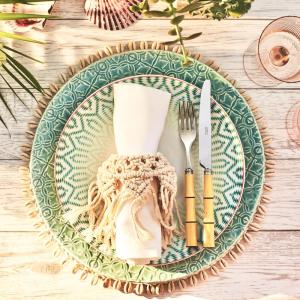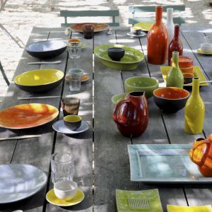 A marier avec de la vaisselle aux liserés colorés ou aux designs exotiques!