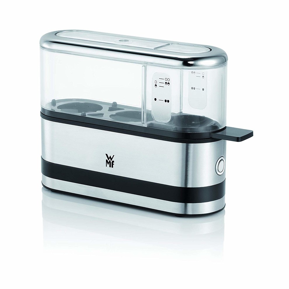 Réalisez jusqu'à deux oeufs (taille S-XL) durs, mollets ou bien coques en toute simplicité avec ce cuiseur à oeuf électrique WMF. Conçu en acier brossé inoxydable, il est ultra-compact et se glissera aisément dans votre cuisine.