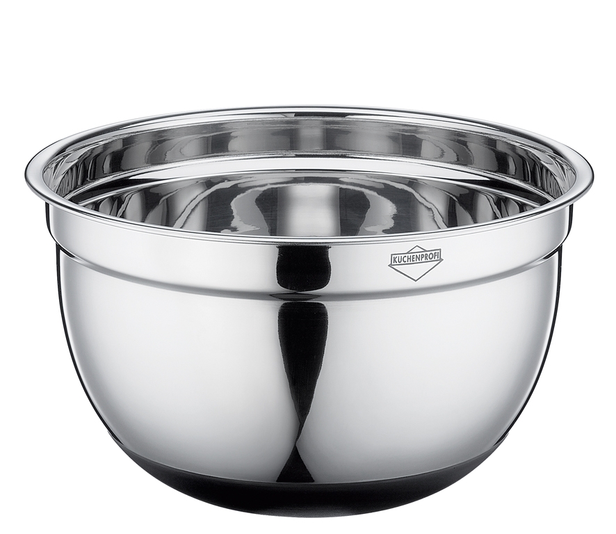 Bol à mixer de 24 cm de diamètre avec socle en silicone antidérapant. Fabriqué en Allemagne, ce cul de poule est en acier inoxydable ce qui facilite son passage au lave-vaisselle et qui le rend aussi très résistant à la chaleur ainsi qu'au froid.