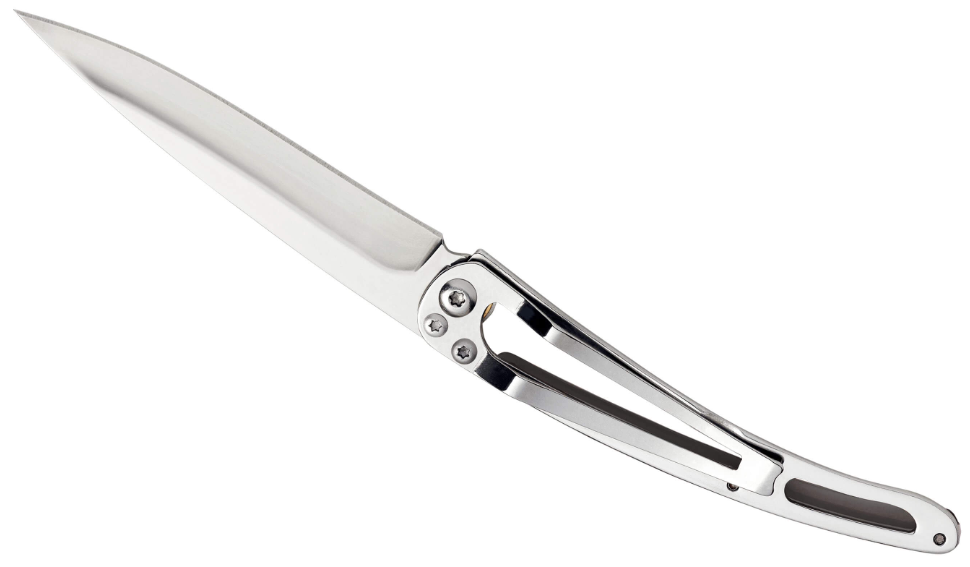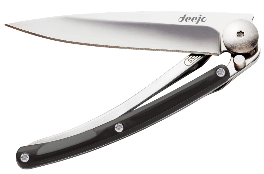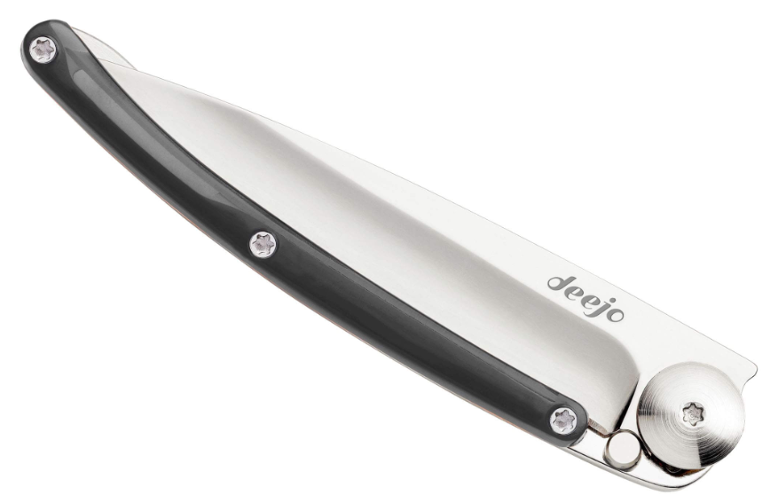 Ultra-léger, le DEEJO COLORS noir ne pèse que 27 grammes. Conçu en acier inoxydable 420 finition miroir, la plaquette du manche est, elle, fabriquée en polycarbonate noir translucide qui offre une transmission de la lumière supérieure à celle du verre. Eblouissant, ses matériaux lui garantissent une excellente résistance thermique, vous permettant de l'utiliser à des températures allant de -135°C jusqu'à 135°C.