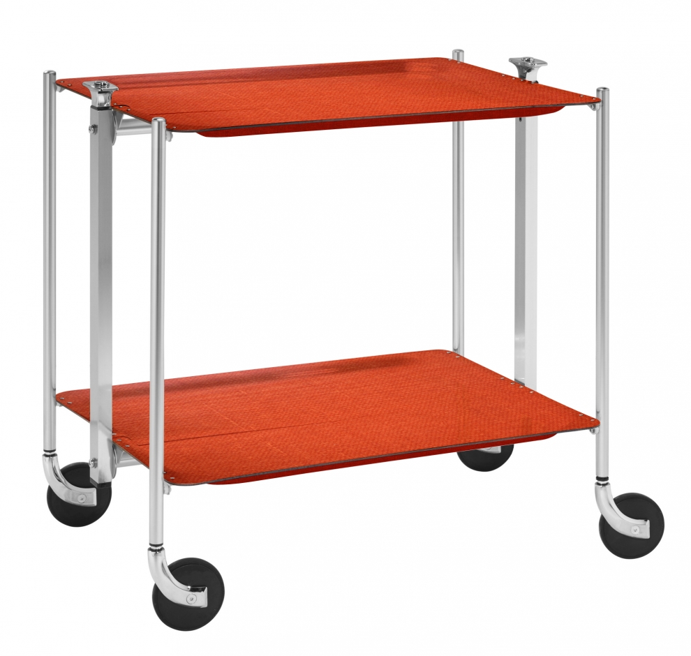 Avec ses montants chromés et ses plateaux terra cotta insertion tissu finition mat, la desserte à roulettes Textable de Platex allie à la perfection élégance et discrétion. Elle s’accordera facilement avec tous les styles d’intérieur et pourra également servir de petit meuble d’appoint pour parfaire votre décoration.