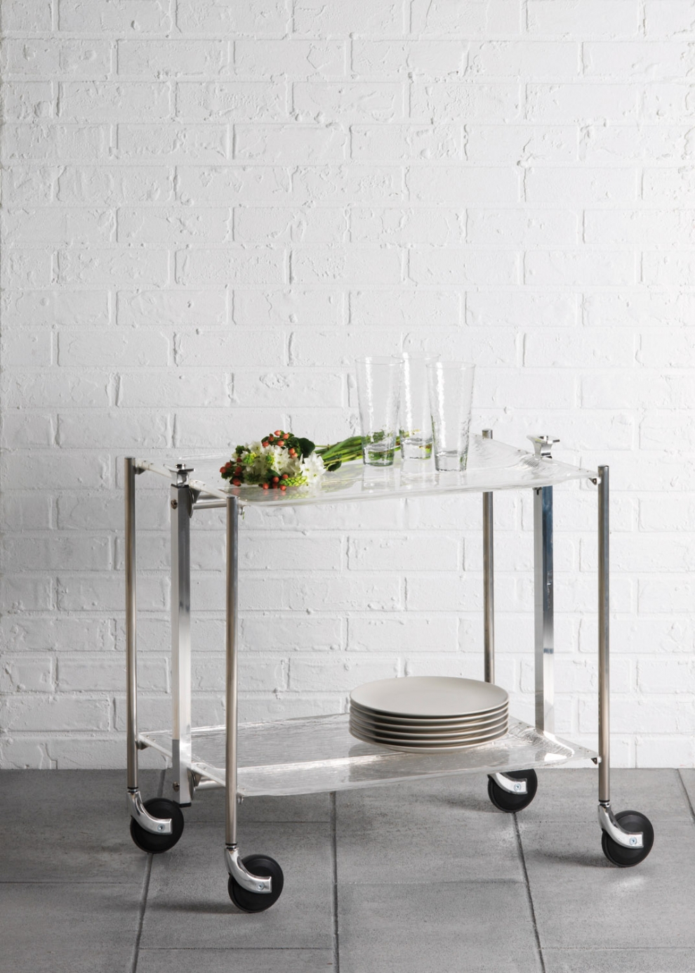 Préparez vos réceptions en toute sérénité avec la desserte de cuisine Textable de Platex et ses deux plateaux en acrylique coloris transparent "givré transparent".