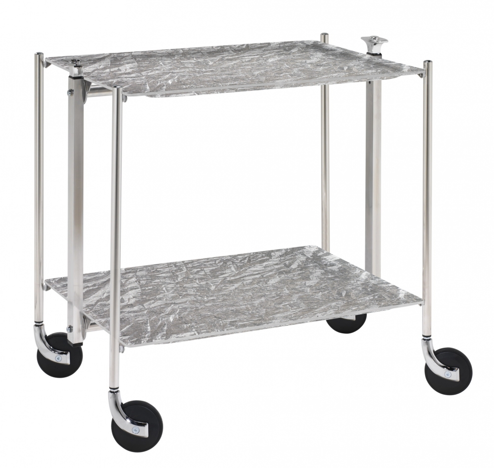Avec ses montants chromés et ses plateaux "old silver" avec un effet froissé et une finition brillante, la desserte à roulettes Textable de Platex allie à la perfection élégance et discrétion. Elle s’accordera facilement avec tous les styles d’intérieur et sera parfaire pour une utilisation ponctuelle lors du service de l’apéritif ou du café.