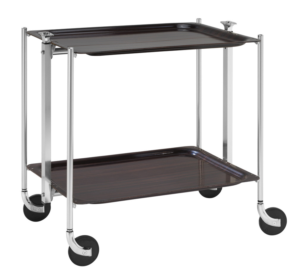 Desserte roulante et pliante 2 étages montants chromés plateaux stratifiés bois