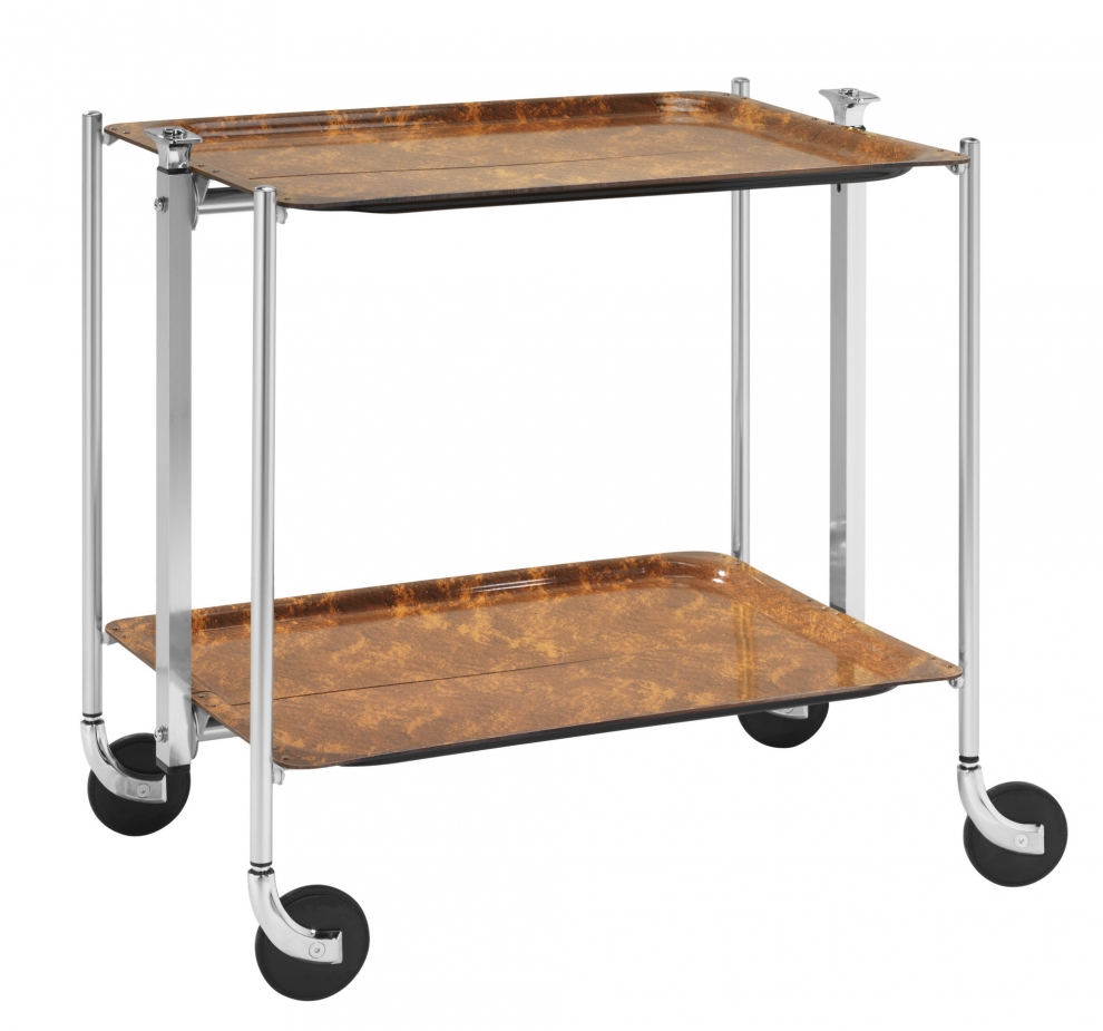 Desserte roulante et pliante 2 étages montants chromés plateaux stratifiés Loupe