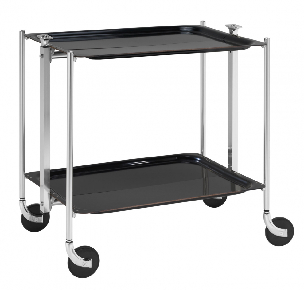 Desserte roulante et pliante 2 étages montants chromés plateaux stratifiés Noirs