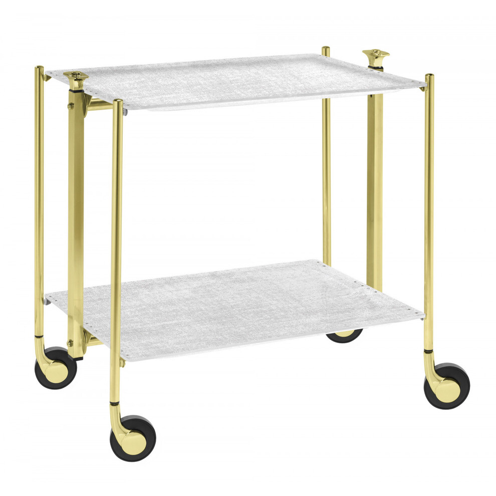 Desserte roulante et pliante 2 étages montants dorés plateaux acrylique blancs