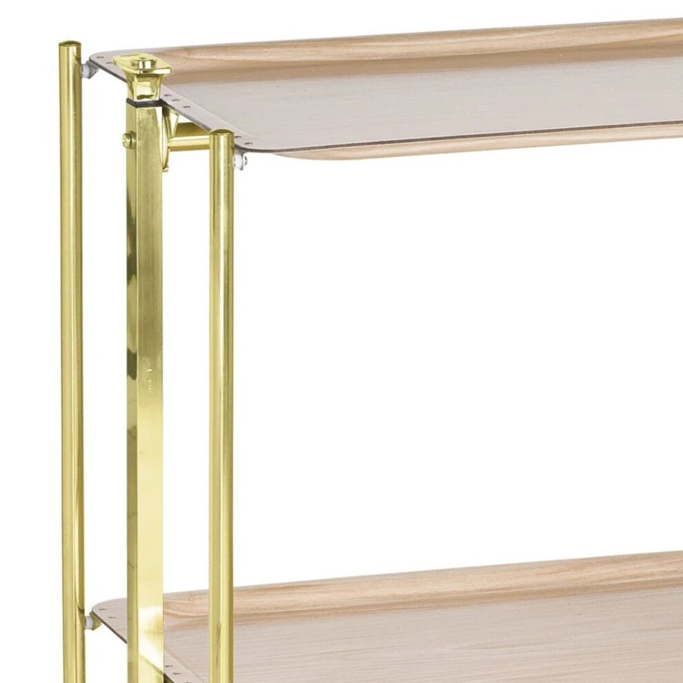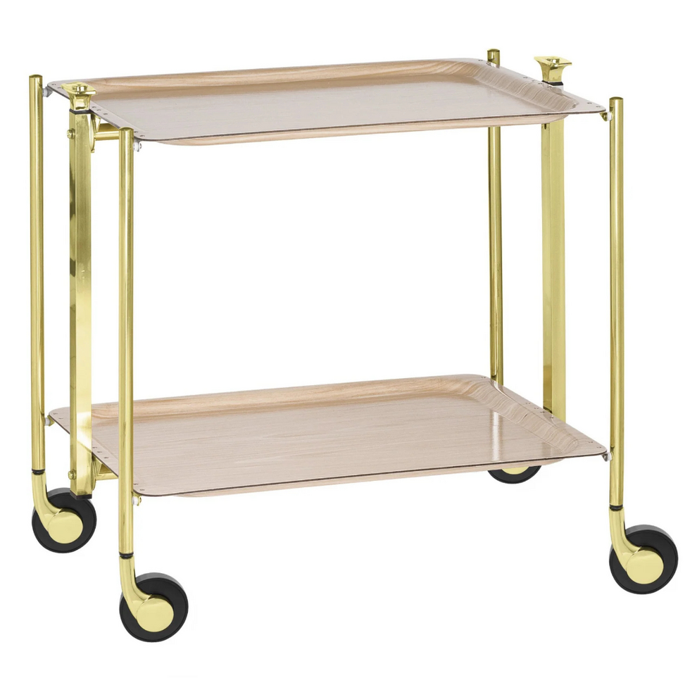 Desserte roulante et pliante 2 étages montants dorés plateaux stratifiés bois Bouleau