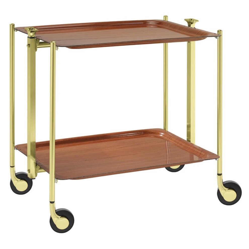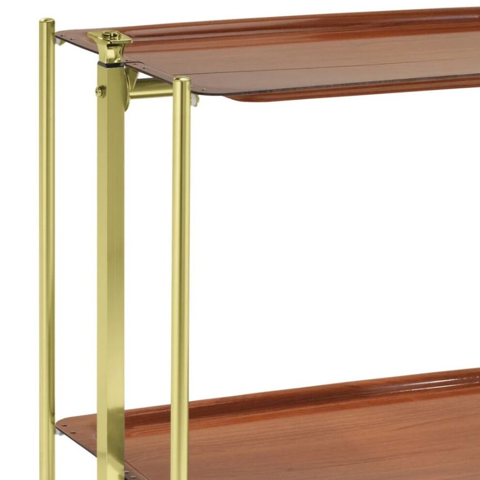 Desserte roulante et pliante 2 étages montants dorés plateaux stratifiés Bois Orme