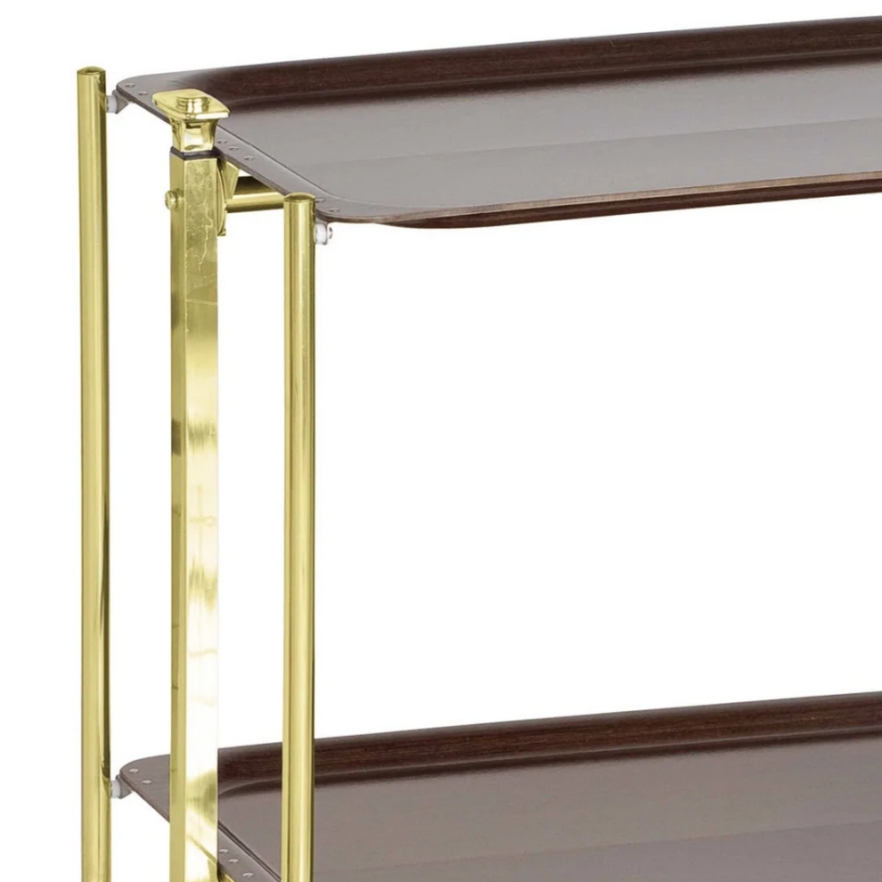 Desserte roulante et pliante 2 étages montants dorés plateaux stratifiés bois Wengé