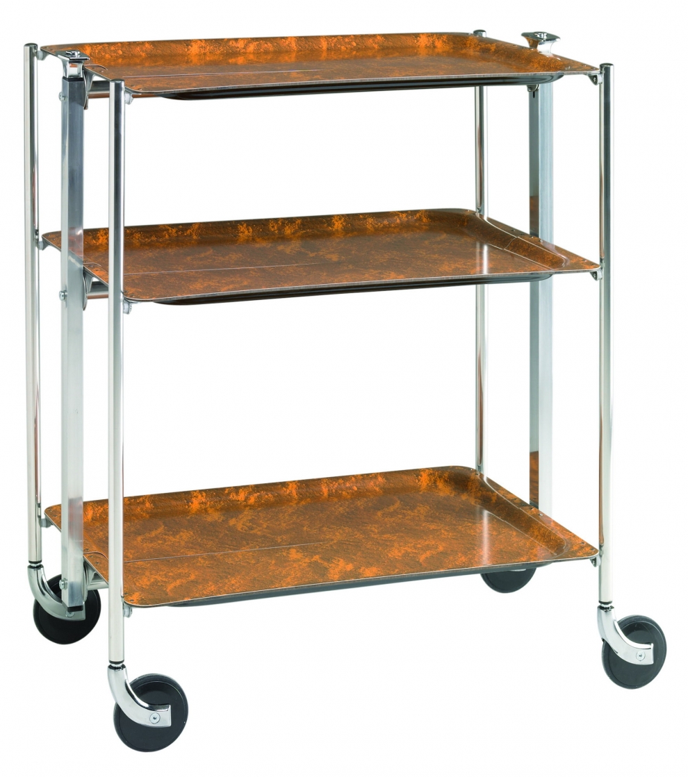 Desserte roulante et pliante 3 étages montants chromés plateaux stratifiés Loupe