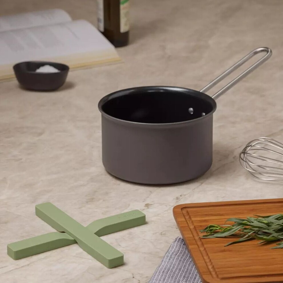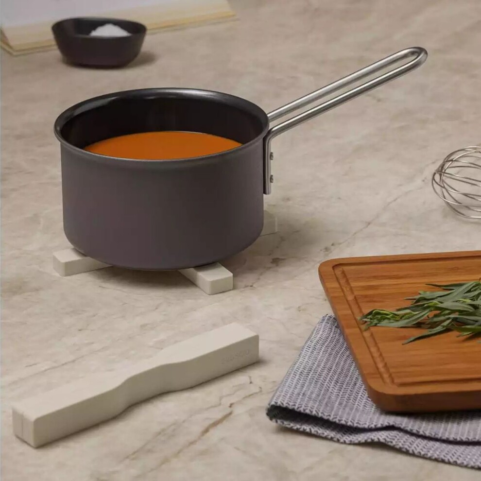 Ce dessous de plat en nylon recouvert de silicone est pratique et polyvalent. Il peut être utilisé en entier pour les petites casseroles ou divisé en deux pour les grands plats comme les plats à rôtir. Grâce à ses aimants intégrés, il reste fixé à la casserole même lorsqu'elle est déplacée à table. Après utilisation, il se range facilement dans un tiroir et est lavable au lave-vaisselle. Design et peu encombrant, ce dessous plat vous séduira par son toucher effet peau de pêche et par sa simplicité d’utilisation.