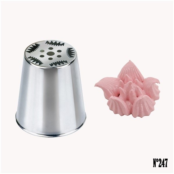 La douille russe à multiples ouvertures permet de confectionner des fleurs en crème pour réaliser des décors d'entremets originaux.