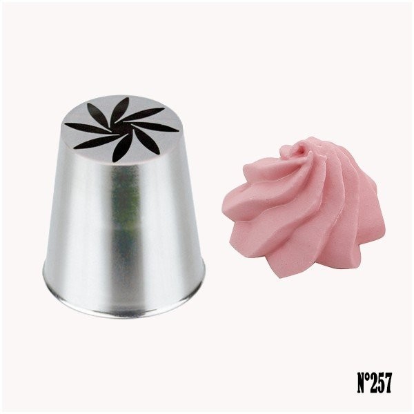 La douille russe à multiples ouvertures permet de confectionner des fleurs en crème pour réaliser des décors d'entremets originaux.