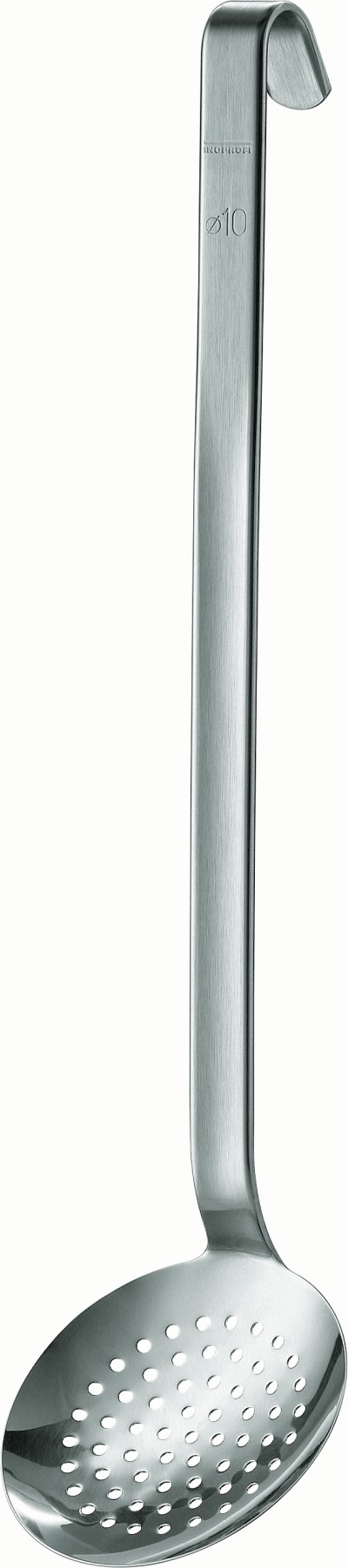Le diamètre et la longueur du manche de cet écumoire ainsi que son bord antigoutte permettent un dosage précis.