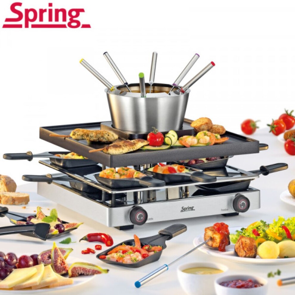 Cette ensemble de raclette et fondue pouvant accueillir jusqu‘à 8 personnes est idéal pour des repas conviviaux dans une atmosphère conviviale. Alliez la gourmandise de la raclette et le réconfort de la fondue. Préparez vos ingrédients à même la table et optez soit pour une raclette traditionnelle, le grill de table pour des spécialités délicieuses ou la fondue classique avec du bouillon, de la graisse chaude ou du fromage fondant pour un plaisir parfait.