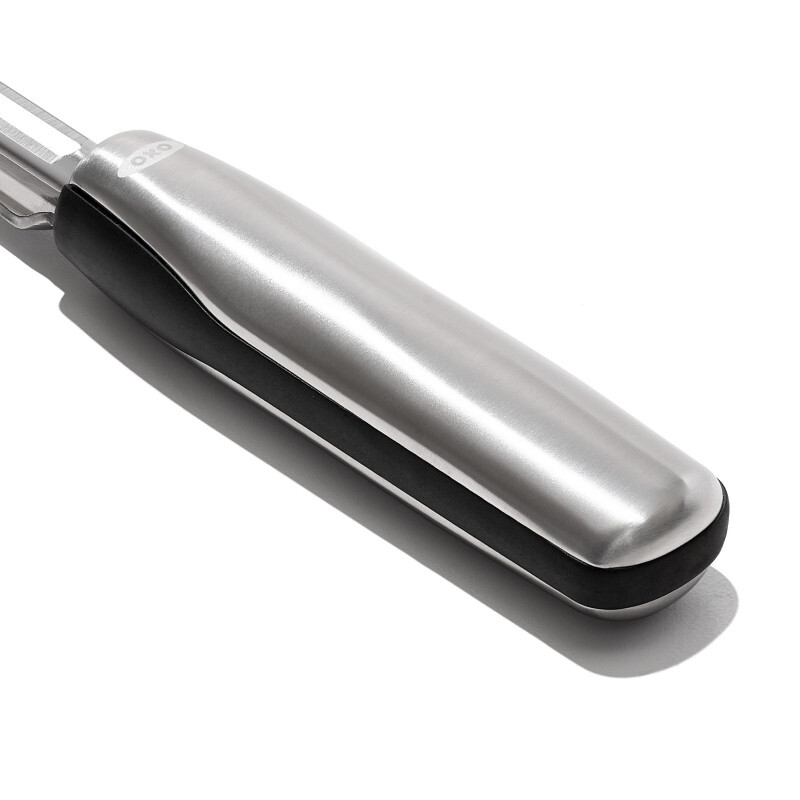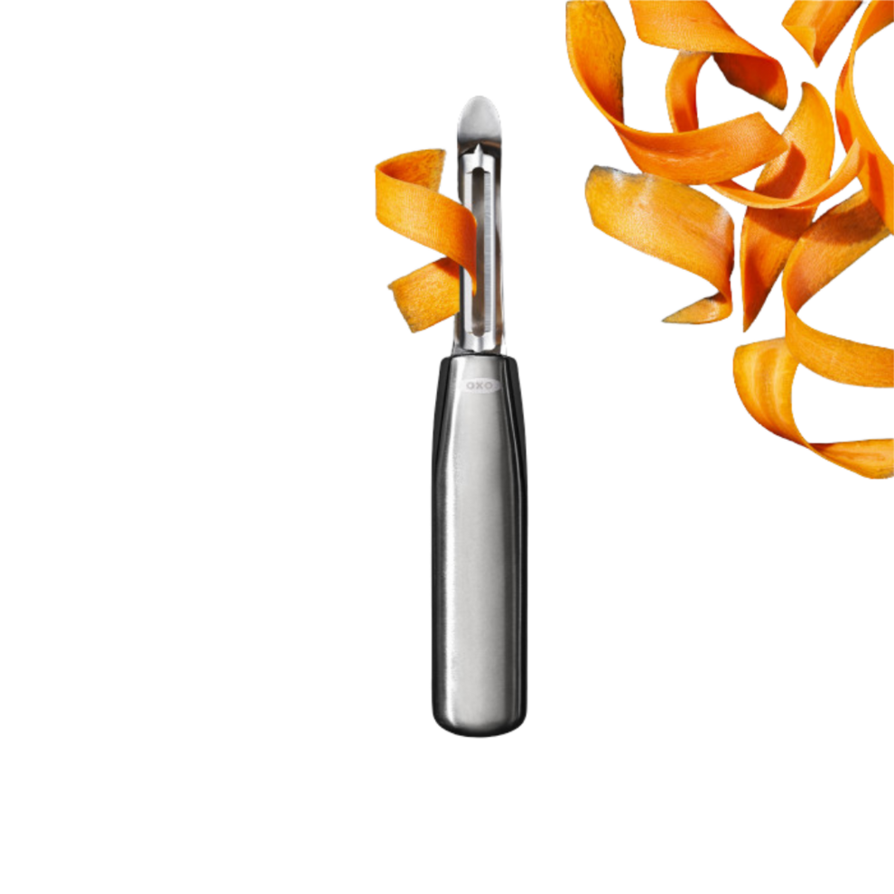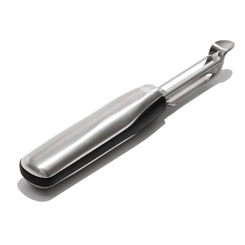 L'éplucheur à légumes oscillant OXO est fabriqué entièrement en acier inoxydable 18/0 de grande qualité, et présente une finition haut de gamme pour vous offrir un ustensile de cuisine solide et durable.