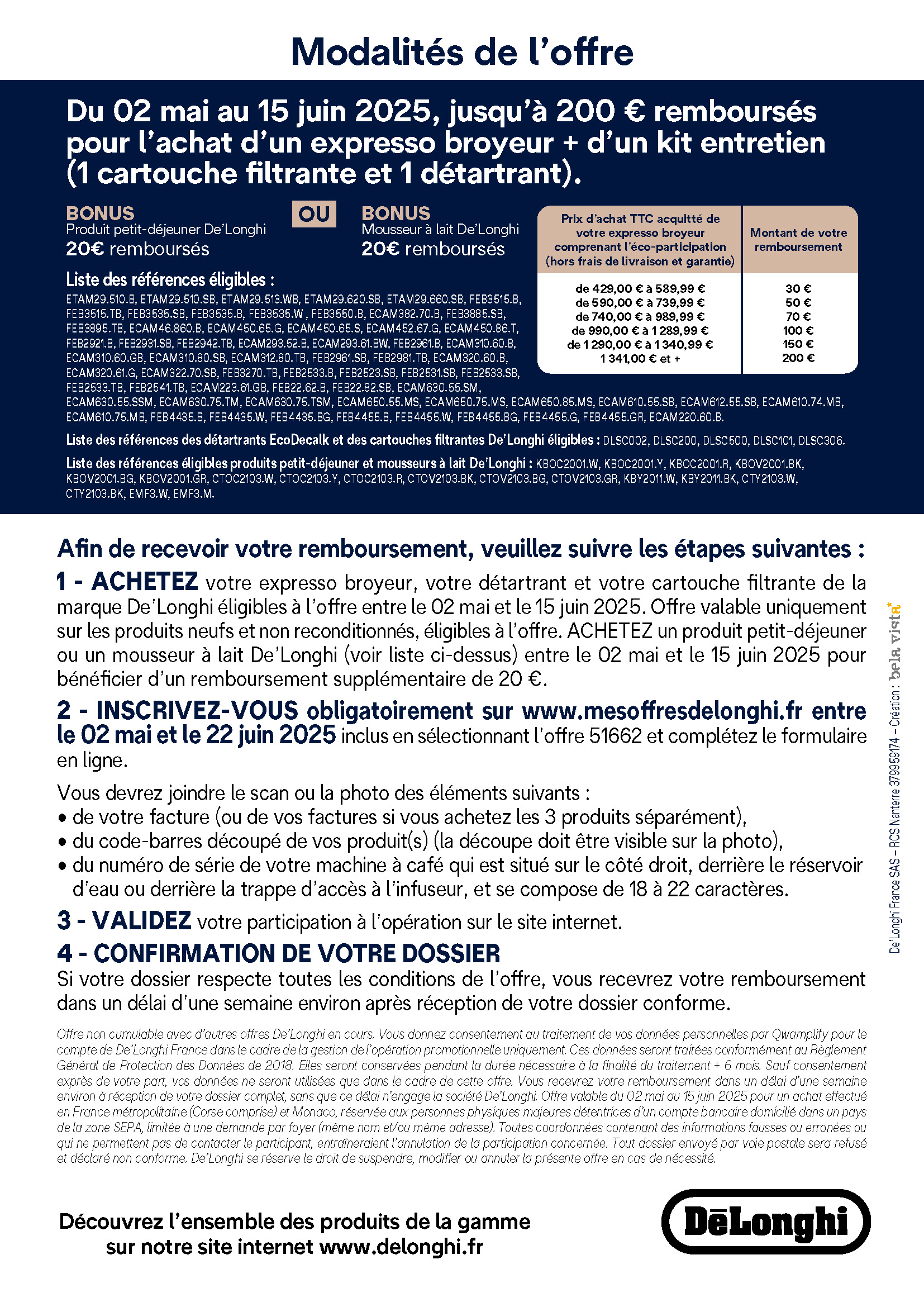 La Dinamica DELONGHI FEB3535.SB est garantie 3 ans.