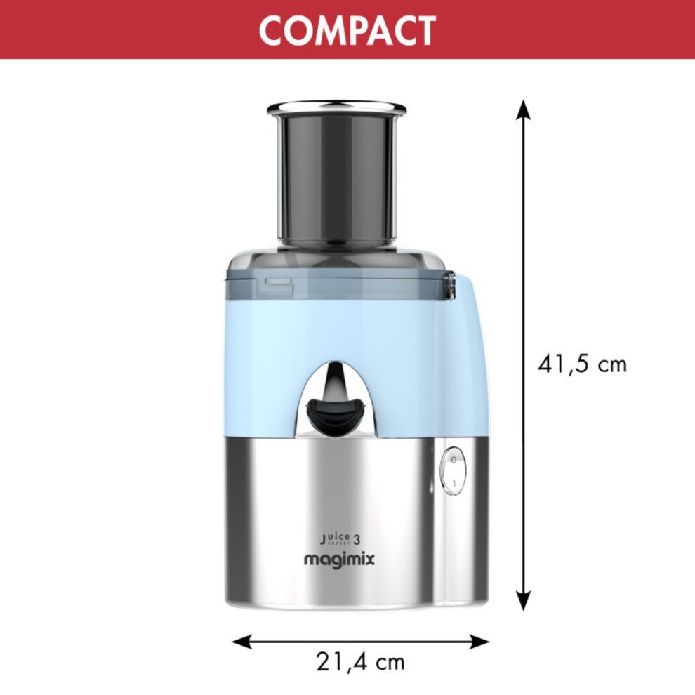 Le Juice Expert 3 mat / bleu ciel est un extracteur de jus 3 en 1 qui vous permet de réaliser des jus et smoothies chauds ou froids à partir de fruits et légumes crus ou cuits grâce à sa technologie innovante.