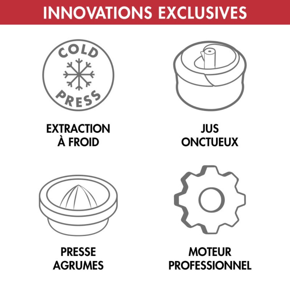 Le Juice Expert extrait jusqu'à 96% de jus, 85% de vitamines et 95% d'antioxydants grace à la fonction Extra Press, vous garderez tous les bienfaits des fruits et légumes même après l'extraction.