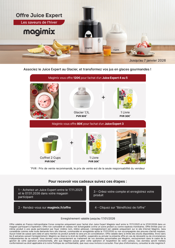 Le Juice Expert Magimix vous permet de conjuguer santé et plaisir au quotidien en associant le meilleur de la nature au meilleur de la technologie. Avec sa technologie exclusive brevetée, le Juice Expert extrait à froid tous les bienfaits des fruits et légumes.