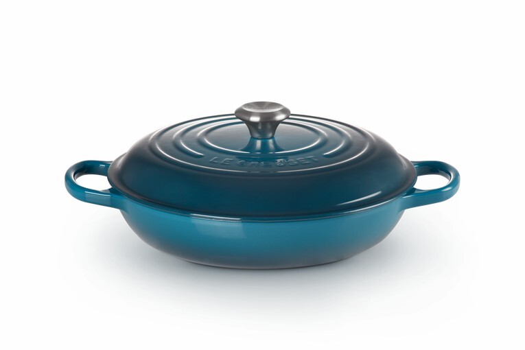 La large La grande dimension plane et les parois peu profondes vous permettront de rissoler viande et légumes, faire dorer, cuire au four ou mettre à mijoter vos plats en sauce. Cette forme bien pensée vous permettra d’obtenir une caramélisation optimale des sucs et d’obtenir des saveurs authentiques.