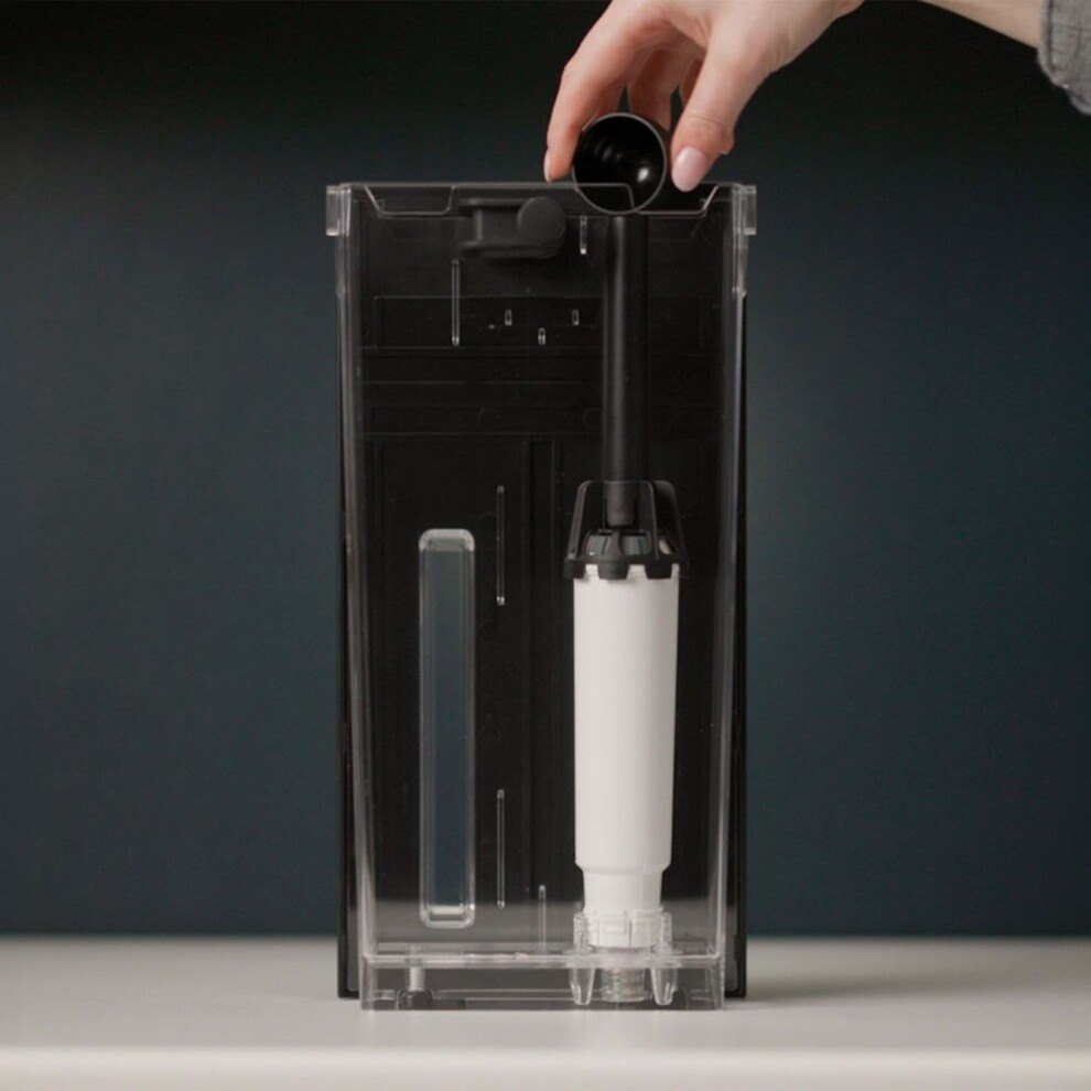 Le filtre à eau est conçu pour s’insérer dans le réservoir des machines à expresso entièrement automatiques KF6, KF7 et KF8. Il se fixe solidement grâce à une base vissée, garantissant une eau fraîche tout en réduisant les dépôts de calcaire. Ce filtre élimine également les impuretés potentiellement présentes, telles que le carbone, le chlore, les particules et le plomb (selon la qualité de l’eau). Il est recommandé de le remplacer tous les 2 mois ou après 50 litres d'utilisation.