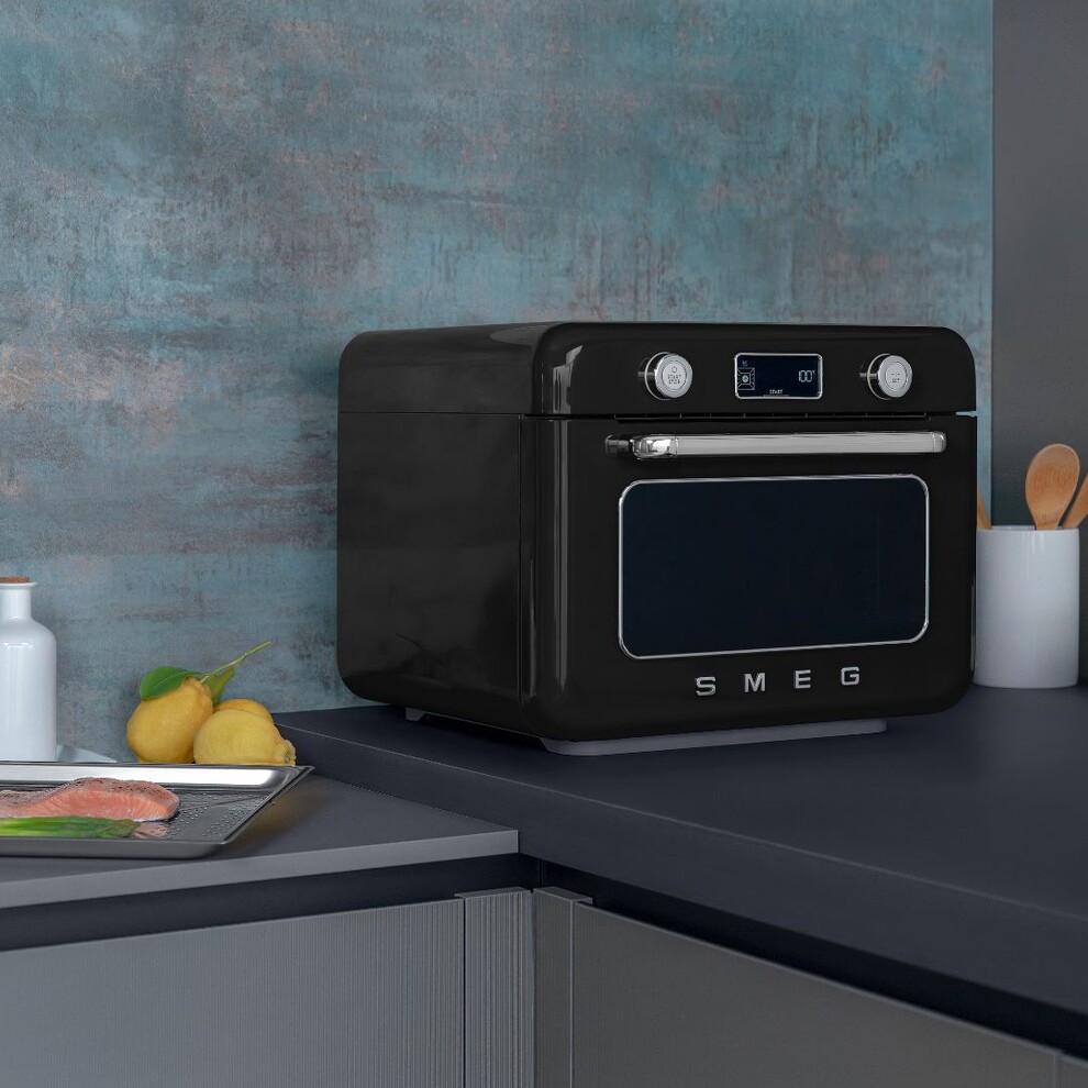 La technologie innovante de Smeg associe un intérieur repensé à une circulation d'air optimisée, permettant de combiner plusieurs techniques de cuisson pour des résultats remarquables, le tout dans un design compact et multifonctionnel.