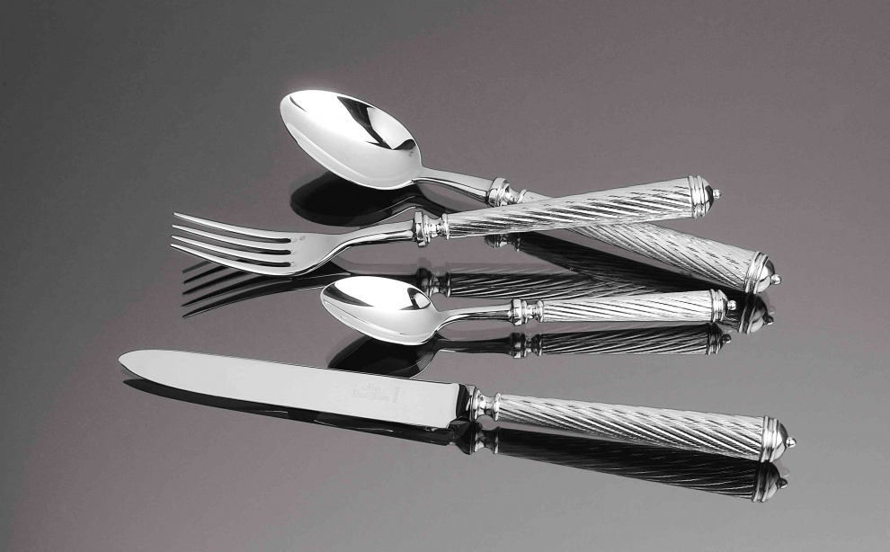 Articles de haut de gamme, nos couverts sont fabriqués à partir de matières nobles : Métal argenté de qualité Orfèvre en inox 18/10, lames de couteau en inox spécial coutellerie et garnitures en métal argenté ou inox.