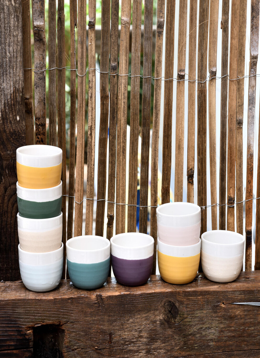 Le gobelet Figue de la collection Jardin de Maguelone de Jars est un gobelet parfait-imparfait de 6,5 cm de diamètre aux lignes irrégulières. La forme organique et délicate de cette pièce sont un délicat rappel à la main du céramiste.