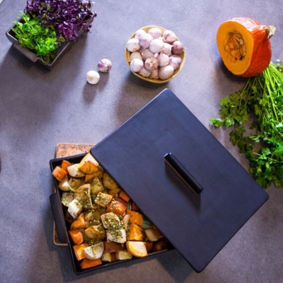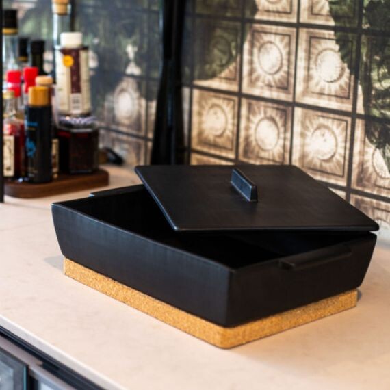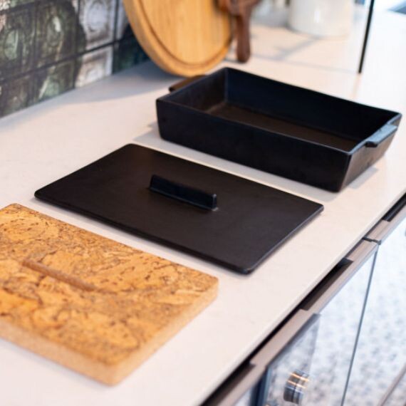Ce grand plat à four est fabriqué en céramique naturelle. Son design très contemporain et sa finition matifiée habilleront parfaitement vos cuisines modernes. Le petit plus ? Le sous-plat en liège naturel, permettant de poser votre plat chaud sur la table. Il se place sur le couvercle, et offre un gain de place non négligeable ! Le plat à four en céramique permet de cuire à l'étouffée, rôtir, garder au chaud ou encore être placé au congélateur pour conserver vos plats.
