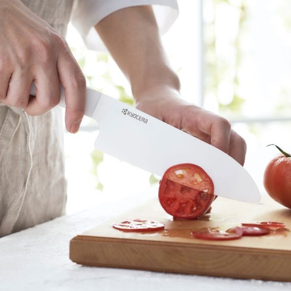 Explorez de nouvelles dimensions de découpe avec le Grand Santoku de 16 cm de Kyocera, une fusion parfaite de tradition japonaise, de polyvalence et de tranchant exceptionnel.